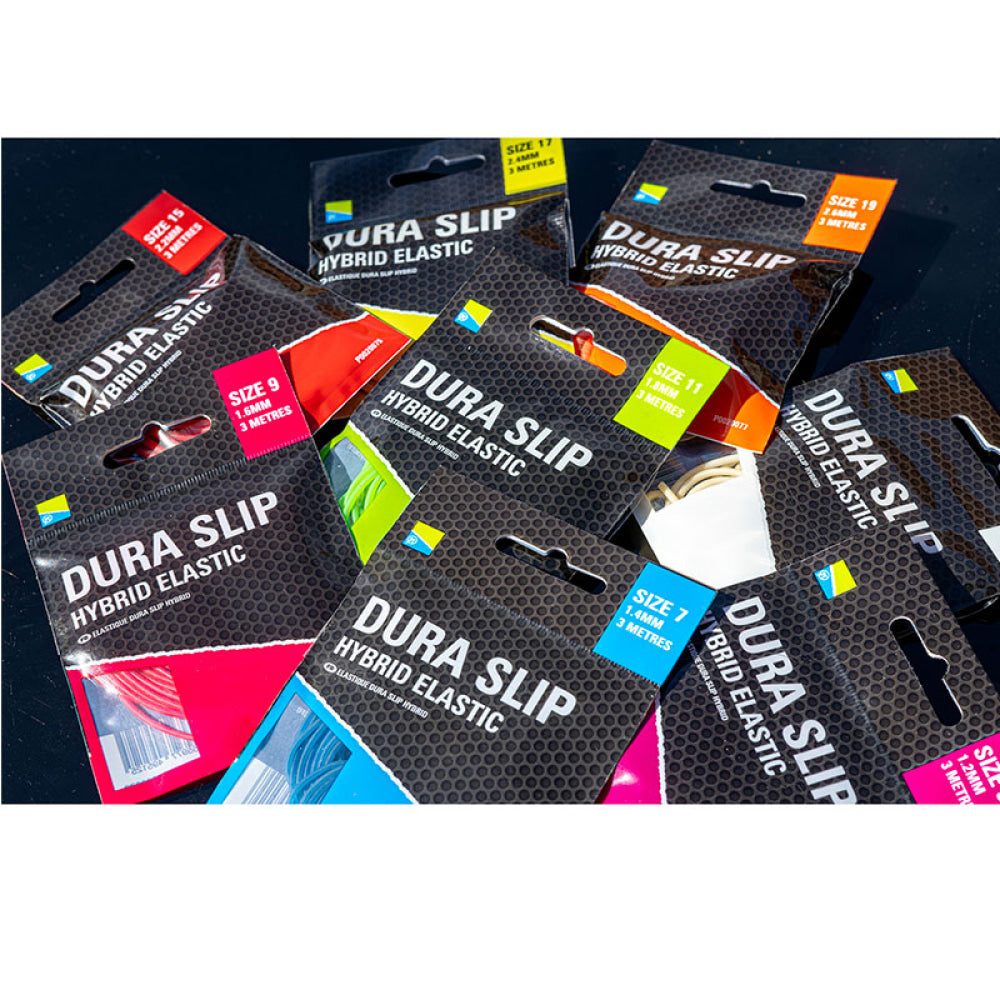 Available in 8 sizes, Dura Slip Hybrid Elastic combines power, durability and incredible stretch to create the perfect full elastic for a wide range of applications. Ideal for both carp and crucian fishing, we have increased performance and further improved durability by treating the surface with non-slip oil. Perfect for all those places characterized by a high number of catches where traditional full elastics may not work 100%.