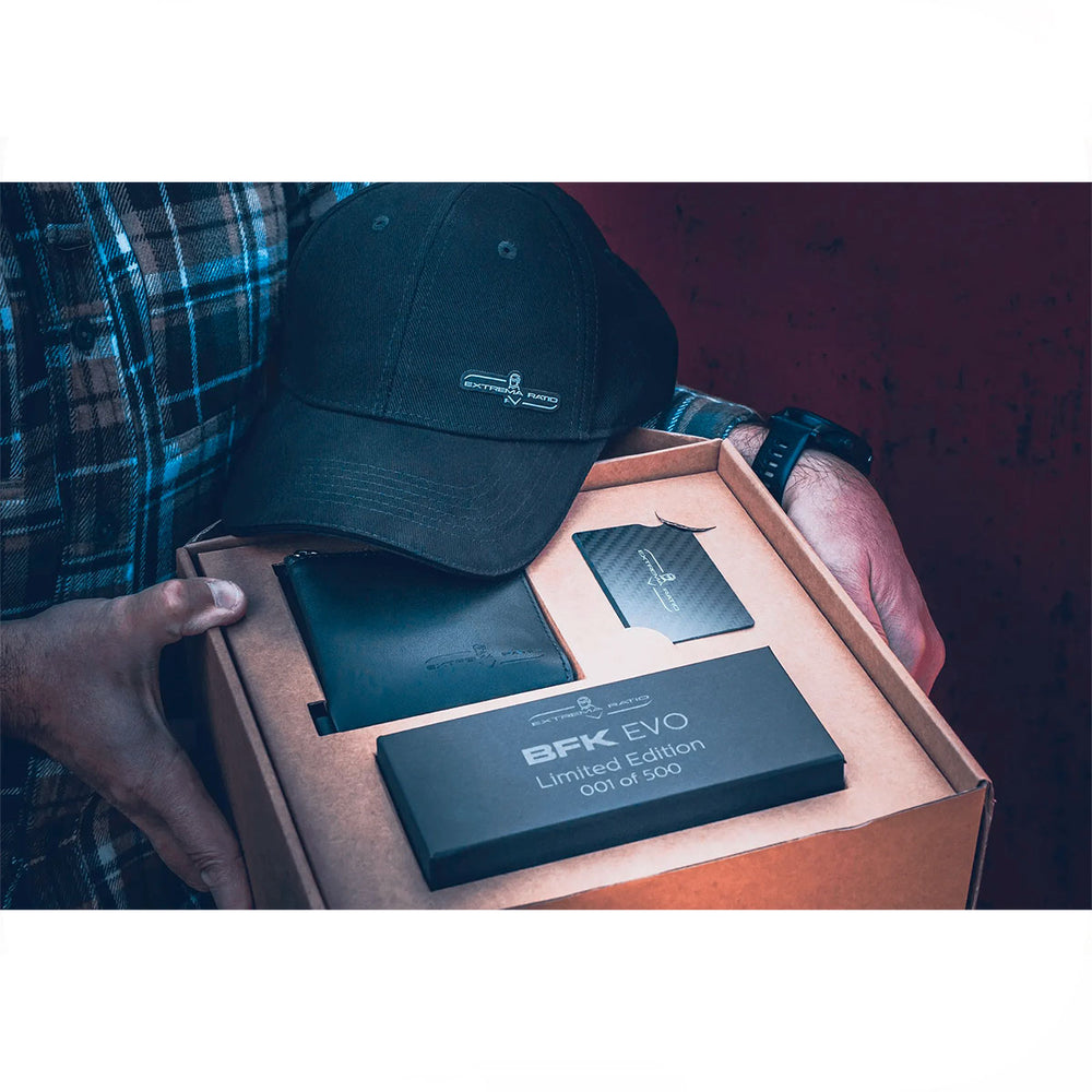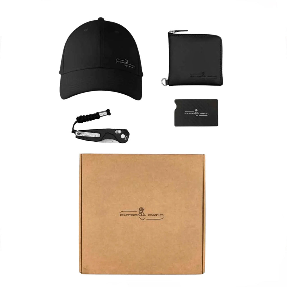 - Un kit completo di accessori EDC (cap, wallet, carbon card, lanyard).