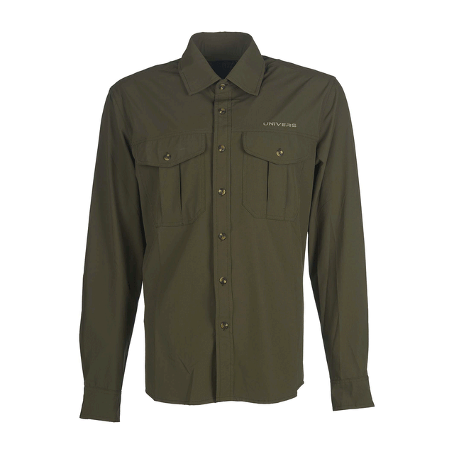 Camicia da caccia PINZOLO, particolarmente elasticizzata e comoda da indossare, grazie al tessuto nylon stretch nelle quattro direzioni che agevola i movimenti e di asciugatura rapida. Due tasche al petto con pattina.