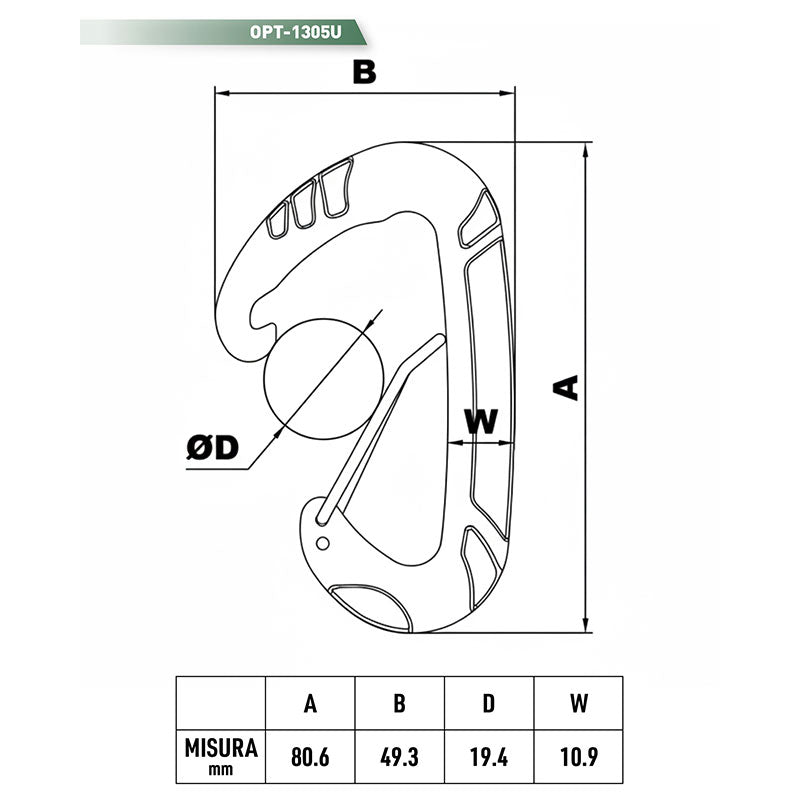 OPENLAND TACTICAL NERG - MOSCHETTONE 1305U ALLUMINIO 7075/6061 | 8cm