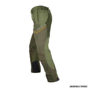 Giunto alla sua terza edizione il mod. PANTHER PRO ha superato ogni aspettativa. Mantenendo le caratteristiche di resistenza all'abrasione, allo strappo, allo snagging (tiro del filo) e alla penetrazione alle spine che lo hanno reso famoso, è diventato più leggero nel peso e snello nelle linee. Le gambe sono più strette pur mantenendo un'ottima libertà di movimento grazie ad un sapiente lavoro di ergonomia e all'inserto stretch in CORDURA nella culatta. Al fondo è presente una robusta cerniera posteriore per stringere ulteriormente il pantalone sulla calzatura. Utilizzando il gancio interno anteriore il sistema opera come una ghetta. La protezione in KEPROTEC è stata ulteriormente prolungata sui fianchi e sul fondo. Cintura con inserto elastico posteriore e cinque tasche. Impermeabile con membrana RAINSYSTEM è un perfetto esempio di connubio tra stile e funzione nella miglior tradizione Trabaldo.