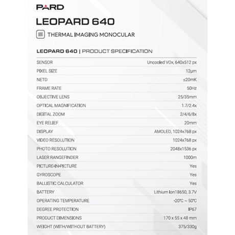MONOCOLO TERMICO - PARD - LEOPARD 640